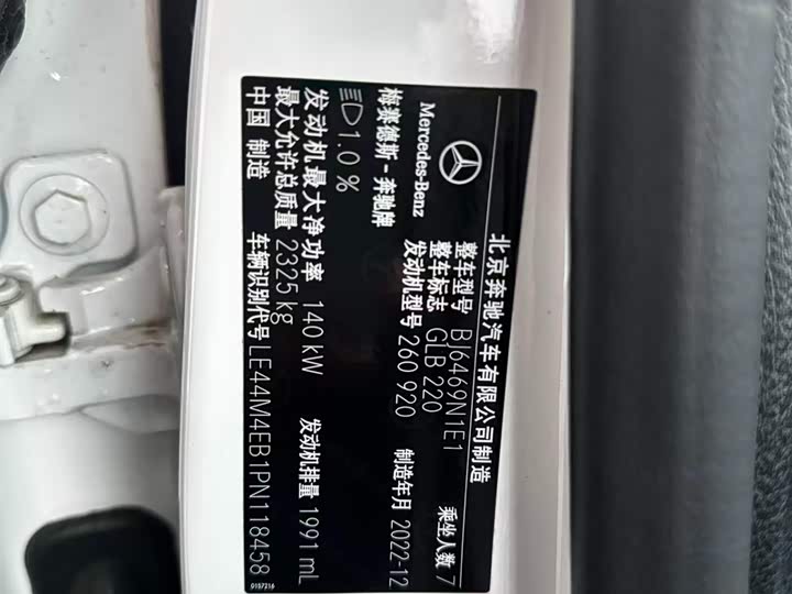 车型: 2023款 GLB220 时尚型